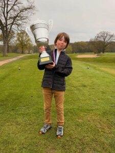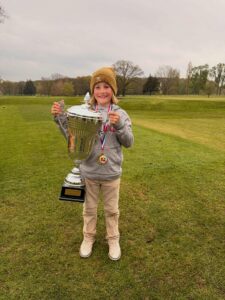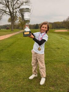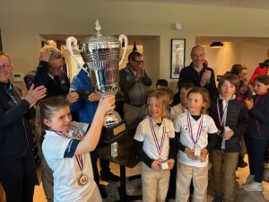 Très excités après leur victoire, nos jeunes golfeurs ont tous voulu soulevé la coupe, presque plus grande qu’eux!